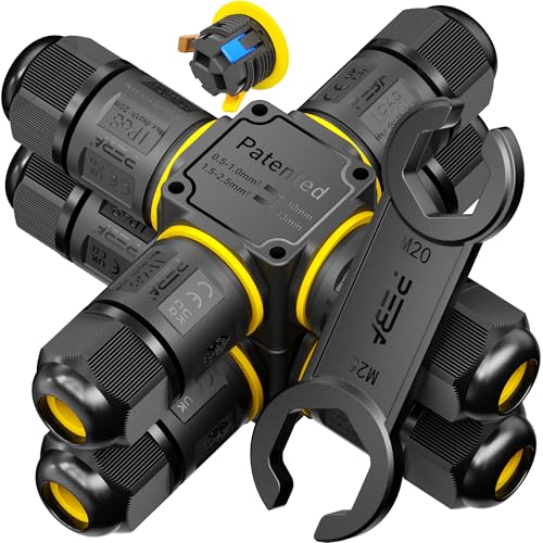 PEBA® Conector de cable estanco IP68,Cajas de Conexiones Impermeables,Conectores electricos rapidos de 4 vías,Manguito de conexión eléctrico exterior 3 pines para jardín apto para cables 4-12mm 2pcs