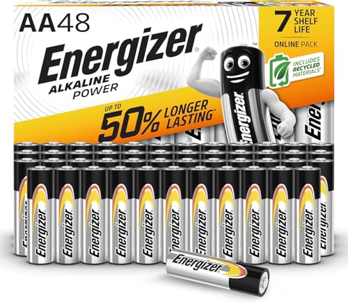 • Hasta un 50% más de energía duradera* – Las pilas Energizer Alkaline Power AA 1,5V (paquete de 48) ofrecen energía confiable y de larga duración para tus dispositivos cotidianos.
