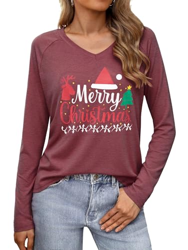Terecey Camiseta Navideña Mujer con Divertido Estampado de Navidad Camiseta Mujer Navideño Manga Larga Ropa Navidad Casual para Fiesta y Regalo