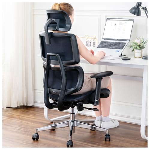 TOP VENTAS: TONFARY Silla de Oficina Ergonómica con Soporte Lumbar, Respaldo y Asiento de Malla Transpirable, Reposabrazos y Cabecera Regulables, Giratoria y Reclinable, Grande y Resistente hasta 150 kg con oferta